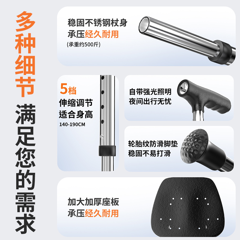 老人拐杖凳子折叠便携多功能可坐椅子两用助步器老年专用防滑拐棍