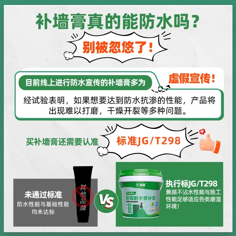 防水补墙膏墙面修补白色防霉反碱脱落掉皮墙体修复腻子膏家用防潮