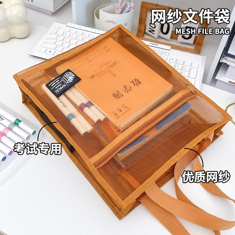 A4竖式透明手提文件袋学生专用补习袋收纳书本加厚款双层网纱耐用大容量多层资料袋办公档案袋外出便携手提袋