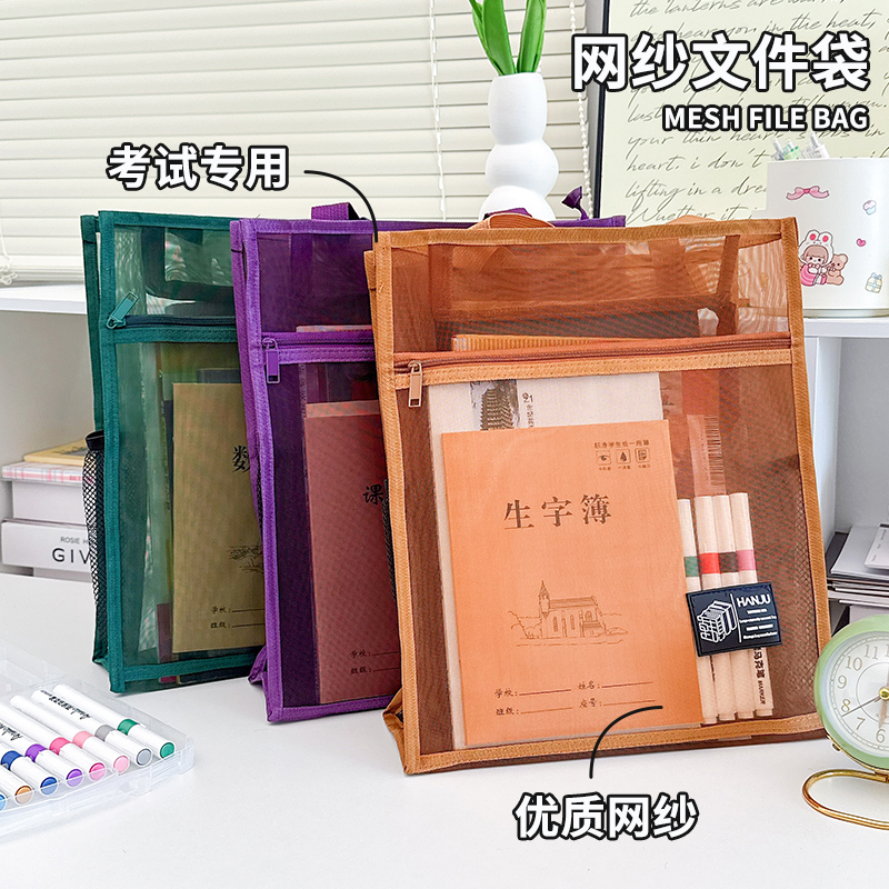学科科目分类文件袋拉链式双层大容量小学生用资料书本课本分科书袋试卷收纳袋学生装卷子作业袋子A4透明网纱