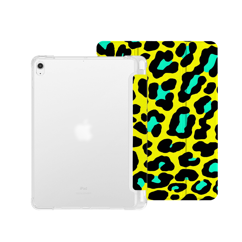 潮款豹纹艺术ins小众适用平板壳iPad7/8/9/10壳2020带笔槽Air2/3/4/5苹果2021第九代11Pro三折min