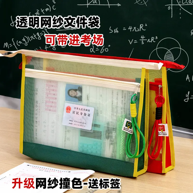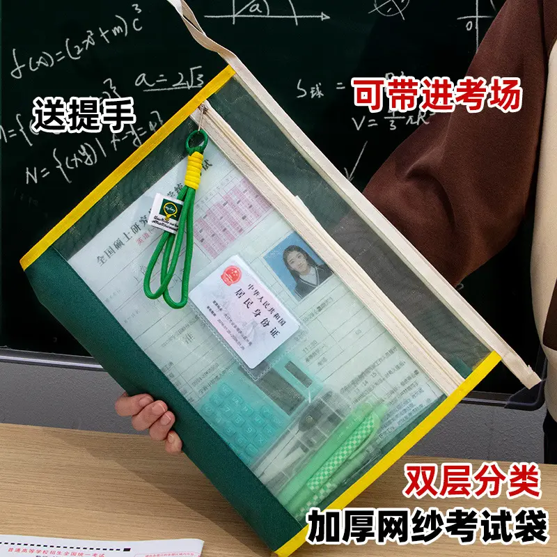 能带进考场!考试专用透明网纱袋子中考高考笔袋a4手提拉链文具袋