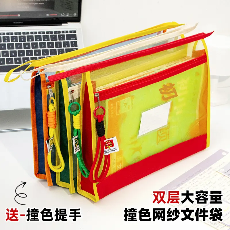 学科科目分类文件袋拉链式双层大容量小学生用资料书本课本分科书袋试卷收纳袋学生装卷子作业袋子A4透明网纱