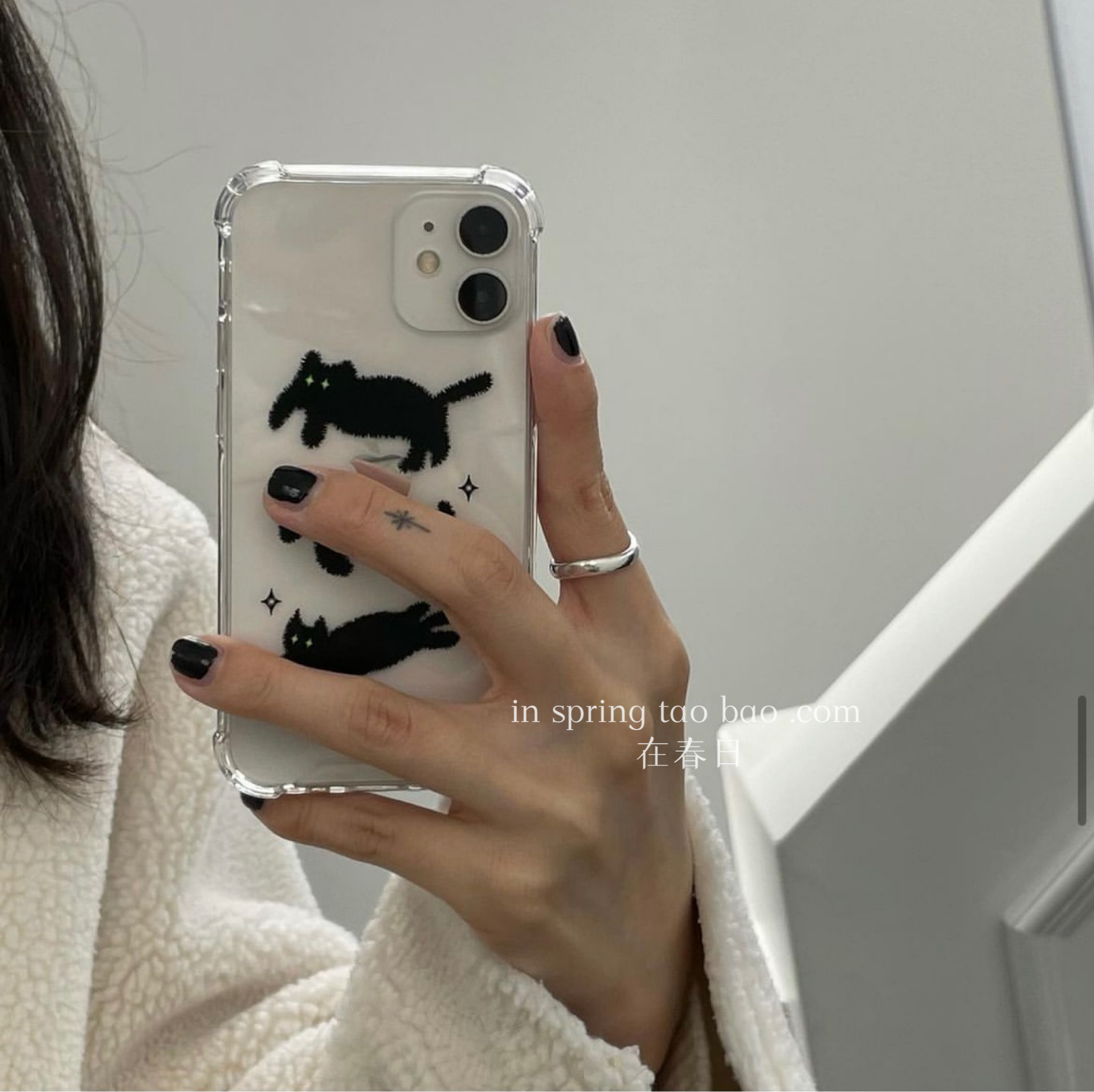 在春日韩国ins博主同款猫咪手机壳15promax/13适用苹果14pro/11情侣xsmax/15pro硅胶男16promax新款17promax