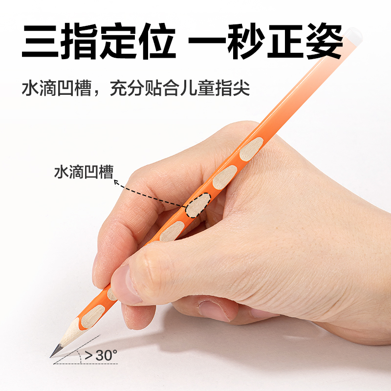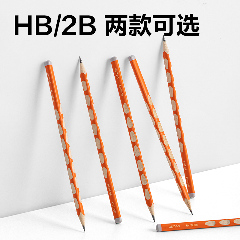 得力洞洞铅笔加粗三角形学生用2b儿童幼儿园凹槽纠正矫正握手练字握笔器hb原木笔三棱初学者写字