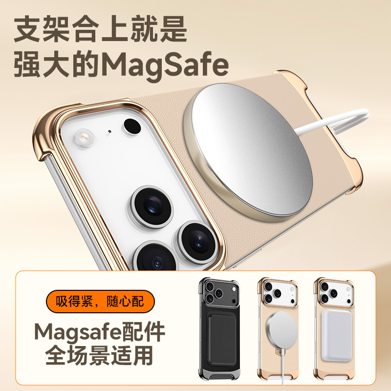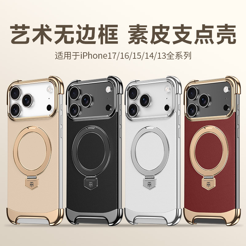 适用iPhone苹果17promax手机壳无边框17pro磁吸支架16promax素皮15promax高级感14/13pro max男女高端套air