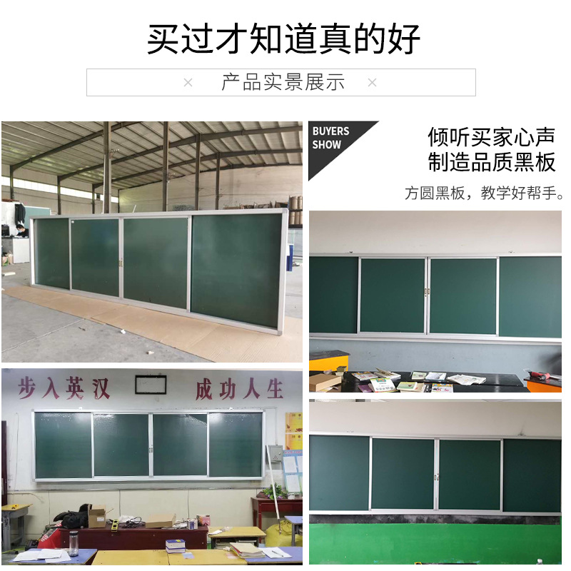左右可移动组合式银色大框推拉搪瓷黑板 无尘易擦推拉式绿板