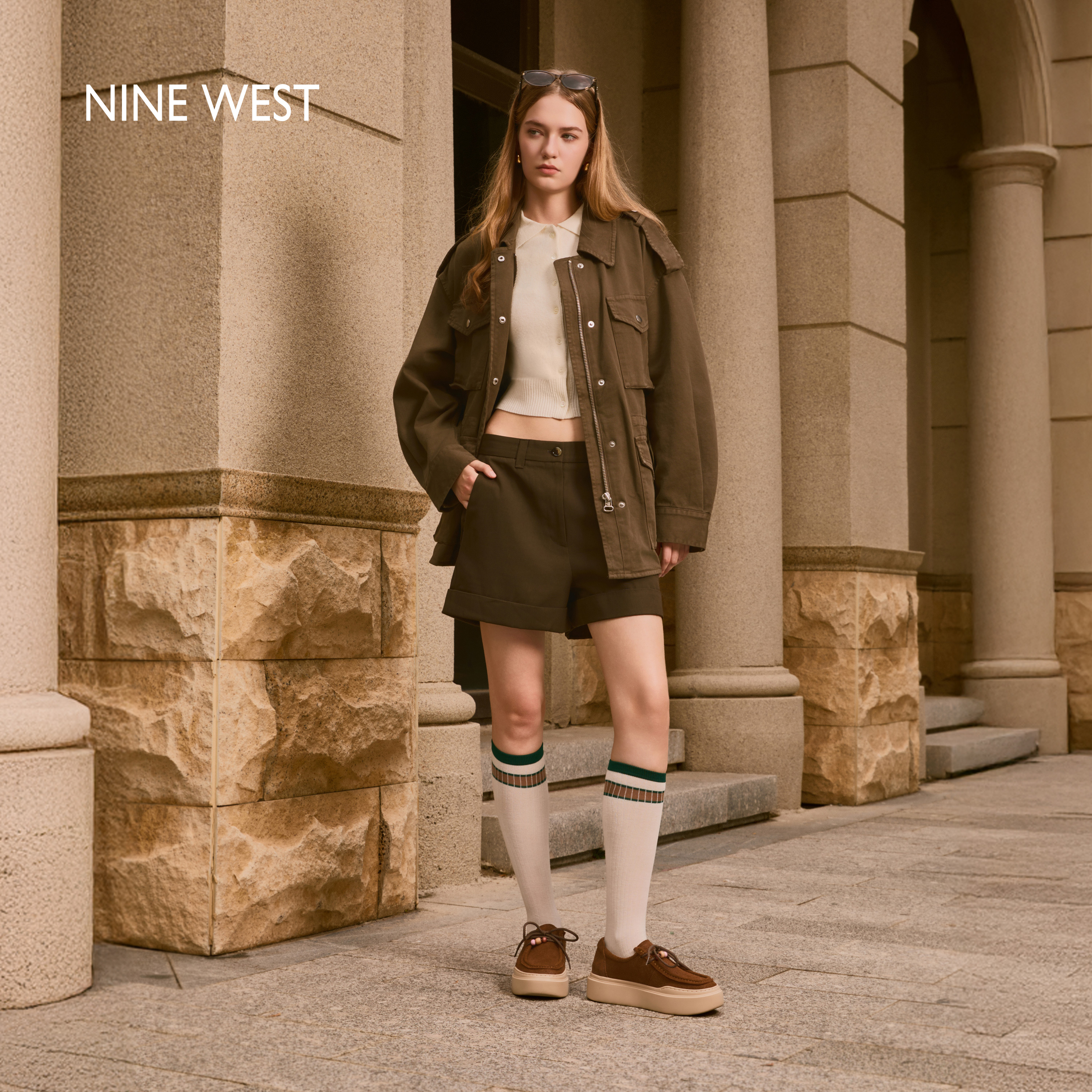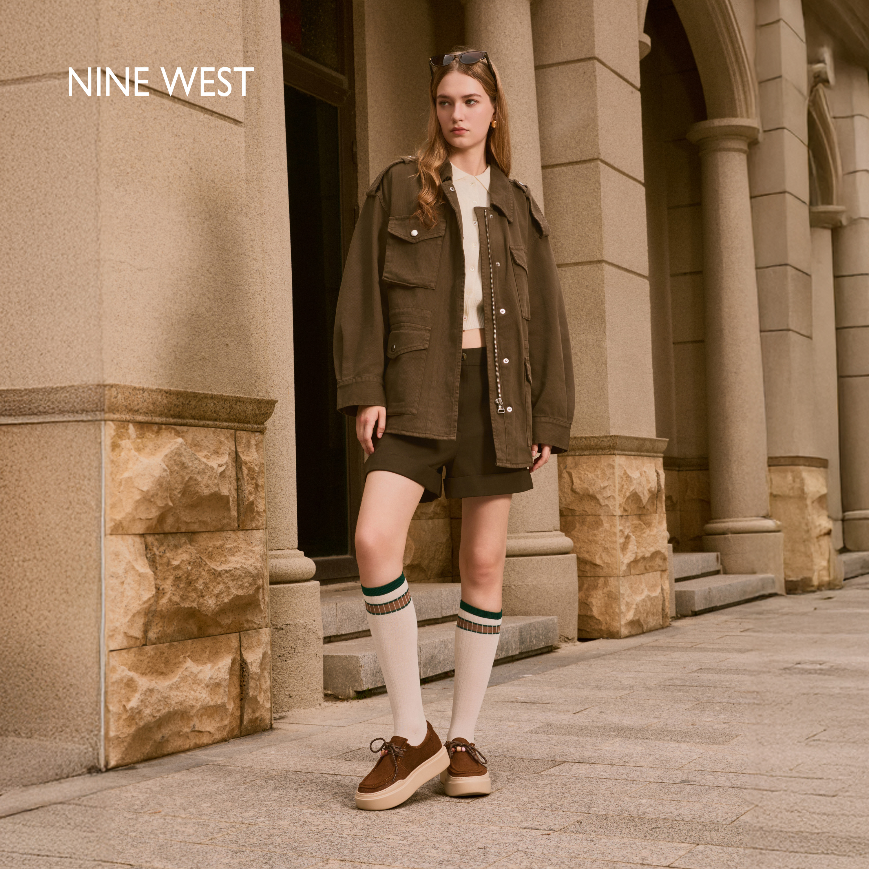 Nine West/玖熙珠语慢行厚底袋鼠鞋女秋季复古百搭一脚蹬乐福鞋