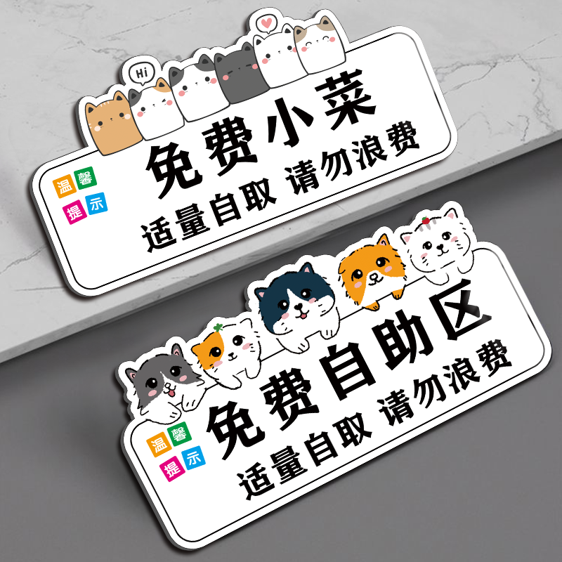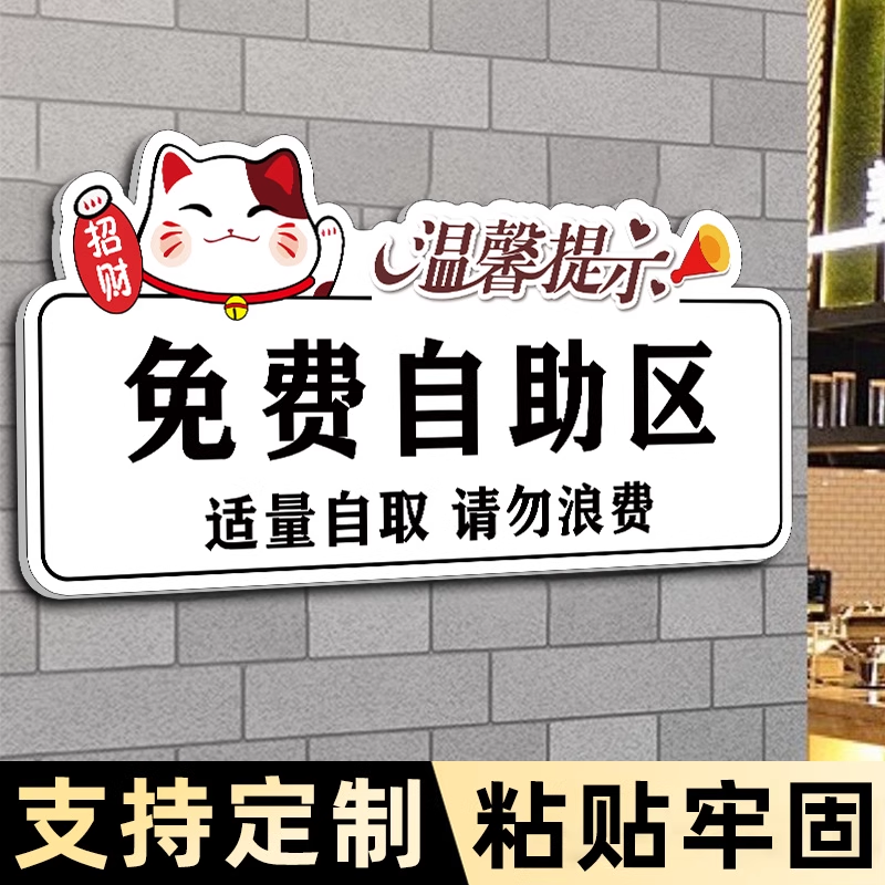 免费自助区调料区指示牌免费小菜提示牌自助调料区指示牌餐具请自取贴免费加饭适量自取请勿浪费温馨提示定制