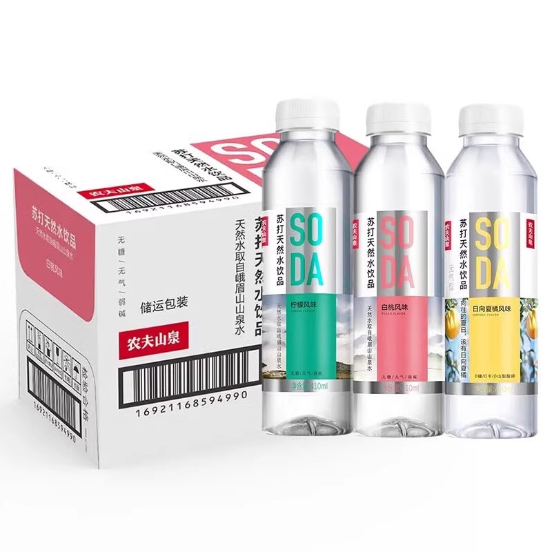 农夫山泉无糖苏打水弱碱性饮用水饮料0糖0脂0卡410ml*15瓶整箱批