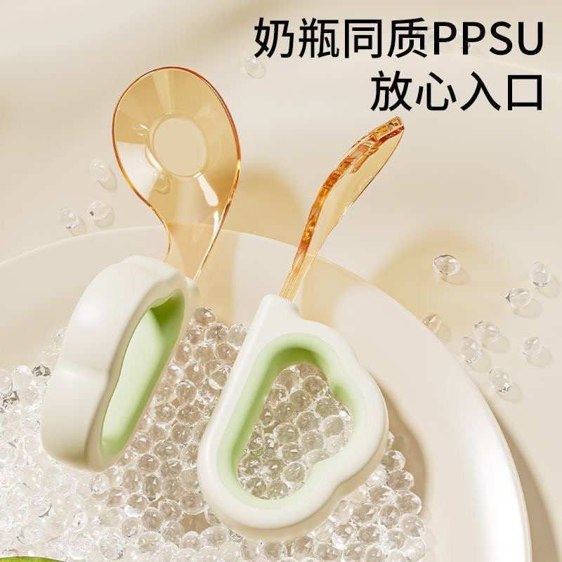 奶瓶级PPSU宝宝自主进食辅食勺子婴儿学吃饭训练叉子儿童叉勺元宝