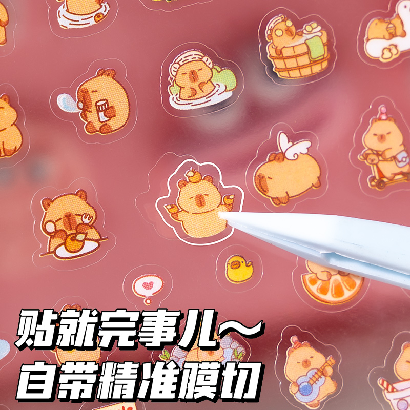 萌崽新款果冻贴纸安静书卡皮巴拉女孩免裁剪diy材料包儿童益智玩具