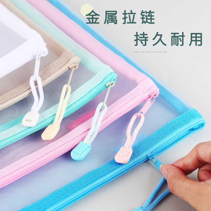 包邮彩色A4透明网纱文件袋拉链试卷收纳档案袋中学生用考试文具袋