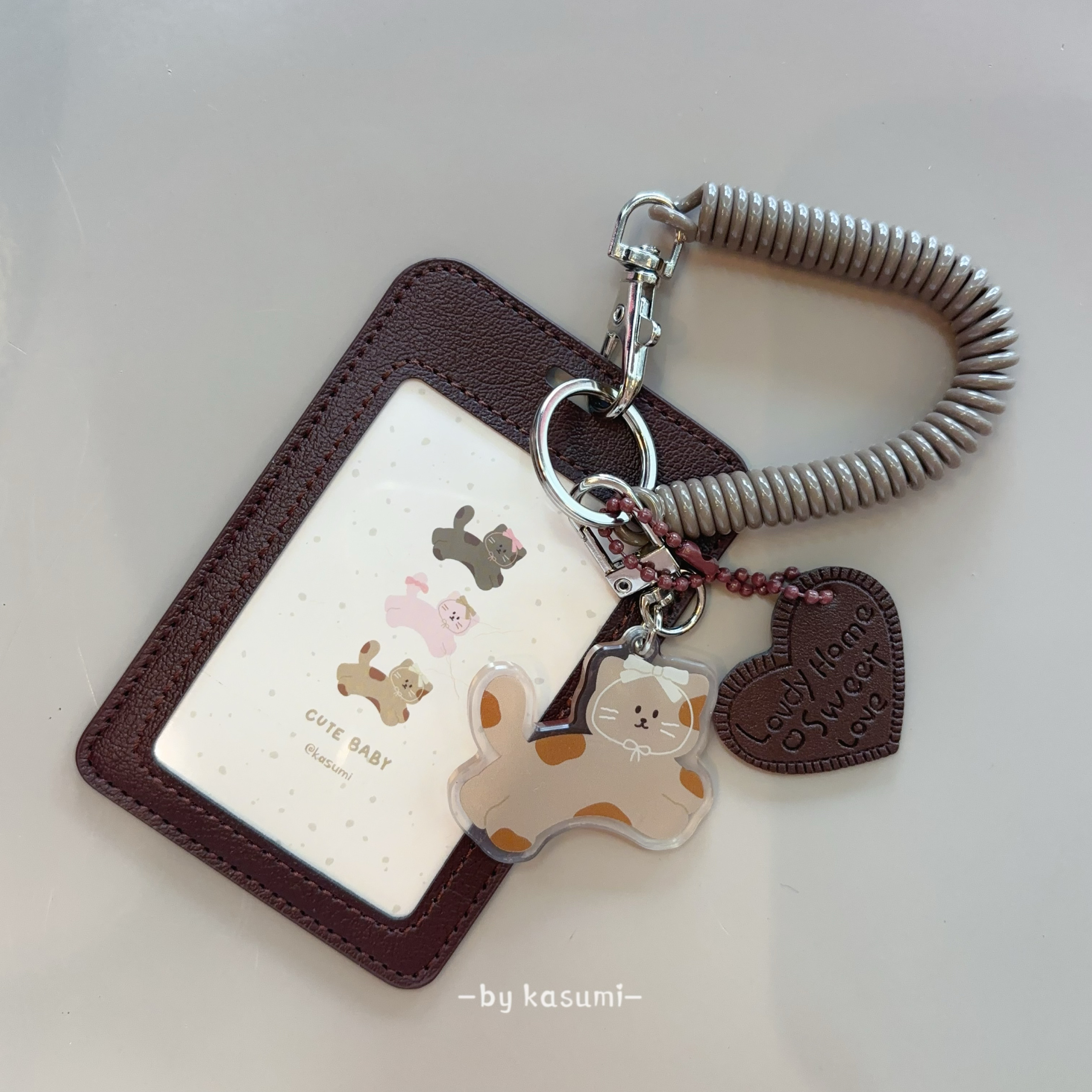 原创版权小猫宝宝背插双卡位皮质公交特斯拉车校园证件工牌饭卡套