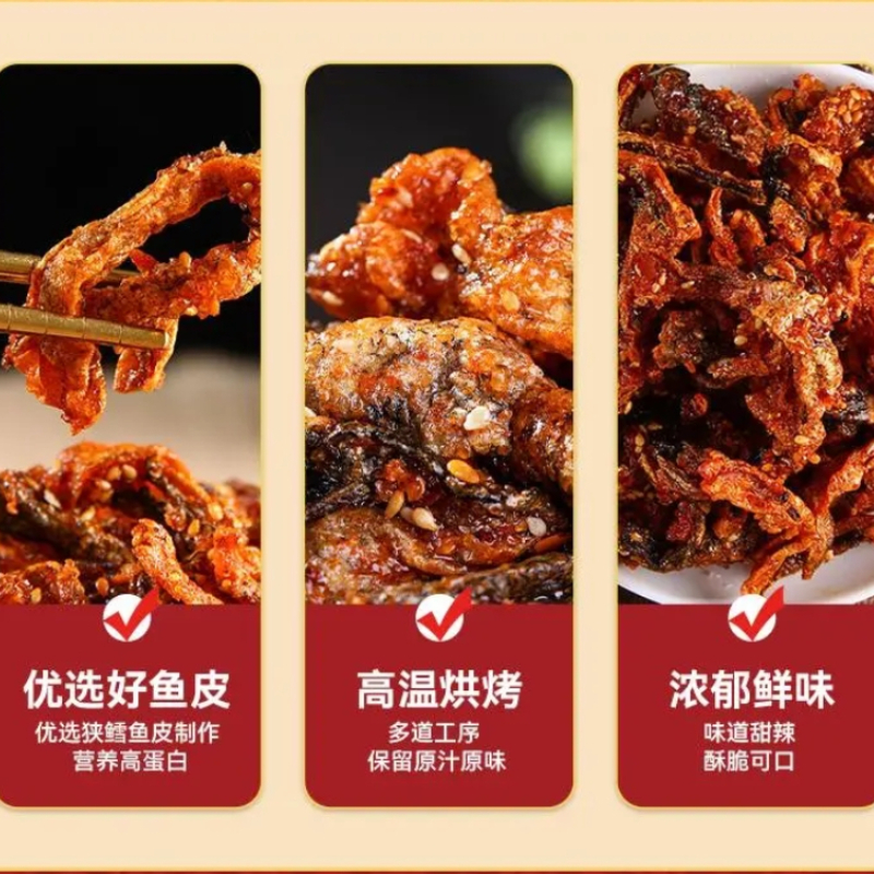 香辣鳕鱼皮香脆鱼皮香辣鱼皮甜辣鱼皮鳕鱼皮海味零食鱼皮开袋即食