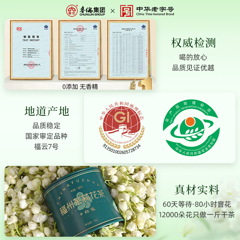 春伦福州茉莉花茶叶新日期特级浓香型绿茶正品官方旗舰店小白毫