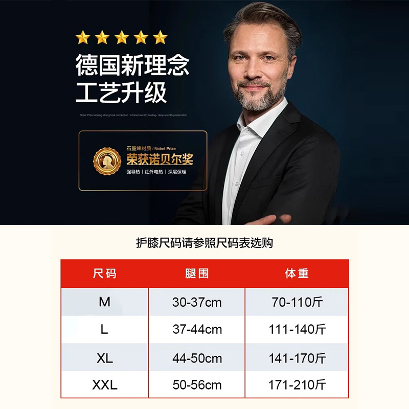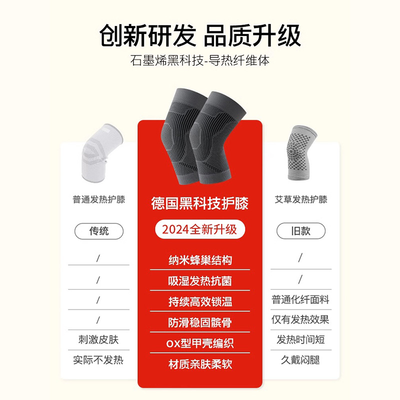 德国石墨烯发热护膝盖套男女士关节保暖老寒腿夏季防寒神器防滑