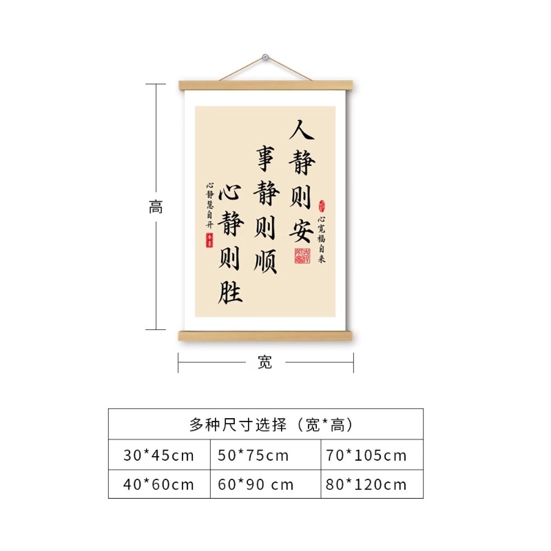 人静则安挂画字画静心装饰画卷轴书法遮挡电表箱客厅办公室画三圣