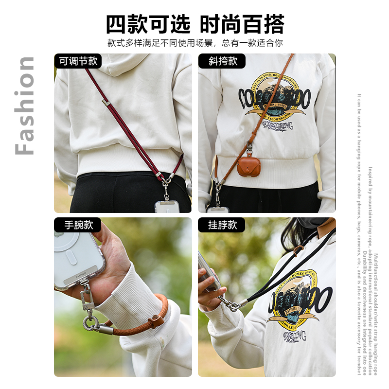 手机挂绳新款多功能防丢夹片长款斜挎可背挂脖手机绳可调节挂链可肩背户外携带登山绳子结实耐用挂脖绳加粗