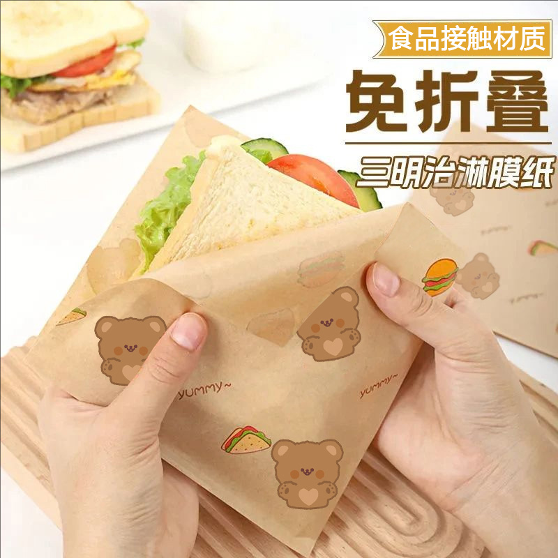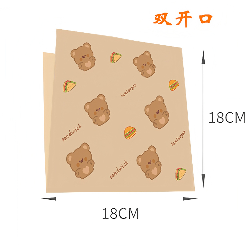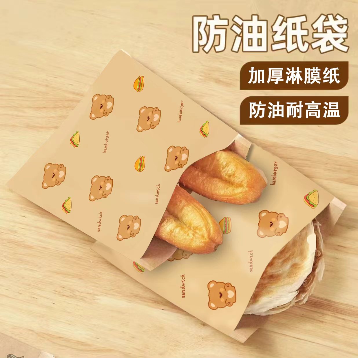 小熊三明治包装纸袋早餐吐司汉堡卷饼手抓饼一次性食品防油纸烘焙