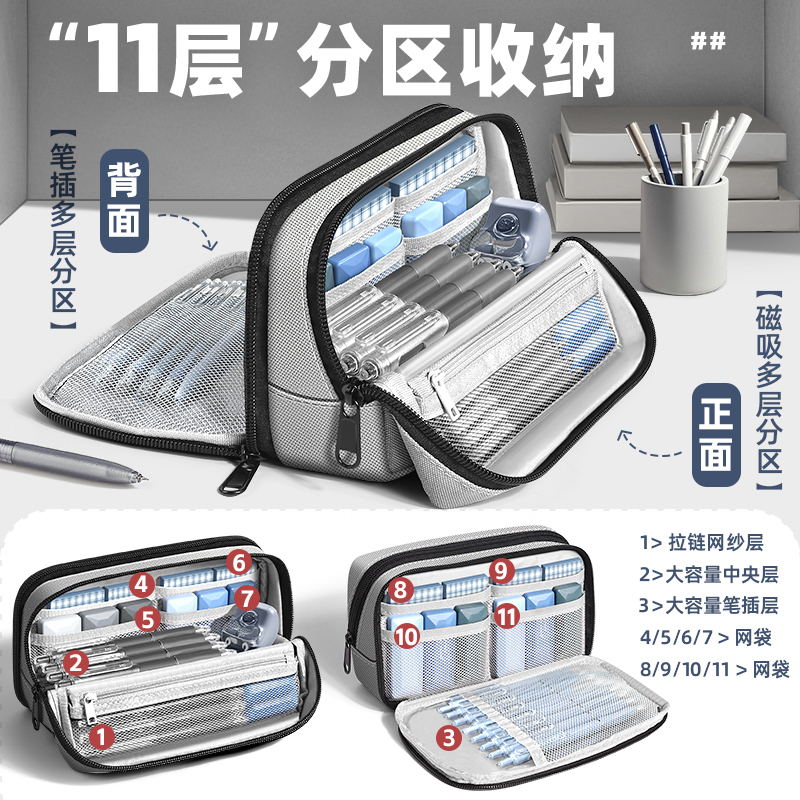 磁吸大容量笔袋铅笔文具盒可立式初中高中生女孩2025新款高颜值超火小众不撞款男孩儿童小学生笔袋痛包
