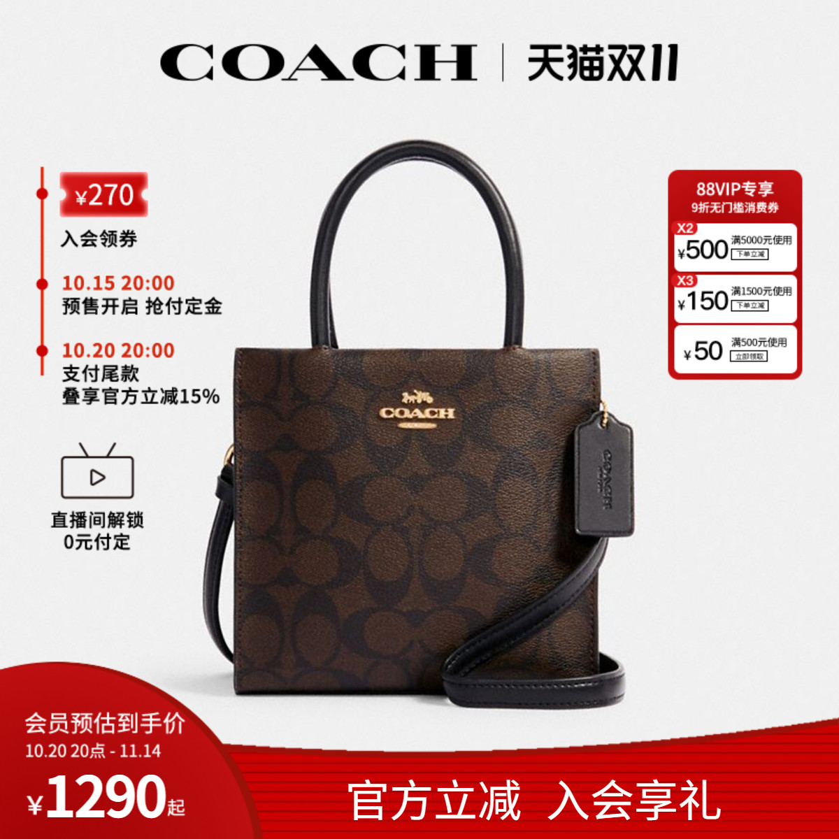 COACH/蔻驰官方 奥莱款MINI CALLY女士老花单肩斜挎手提包琴谱包