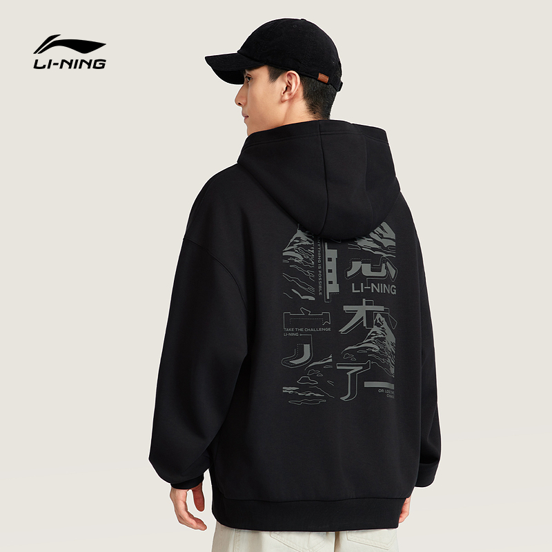 李宁卫衣 运动时尚系列 男女同款加绒保暖抗菌抗静电宽松套头卫衣