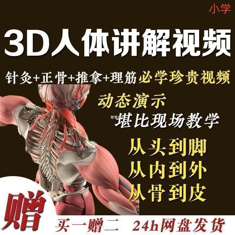 中医人体骨骼肌肉学习3D动态讲解演示视频自学资料中医人体素材