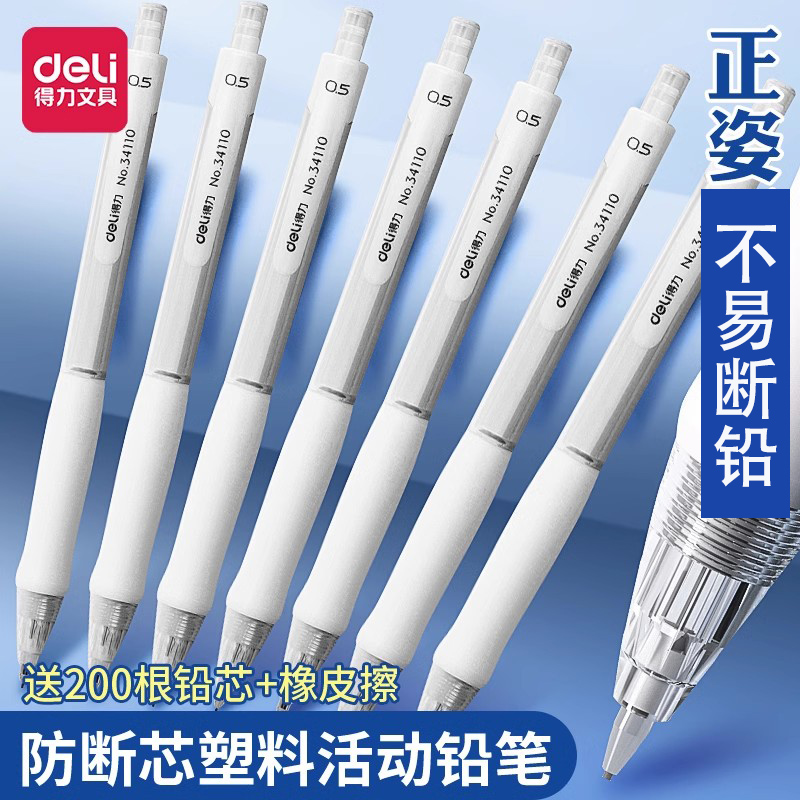 得力自动铅笔小学生专用不易断芯0.7活动铅笔柔顺出芯0.5HB软胶握垫护手绘图画画美术勾线不累手学生文具