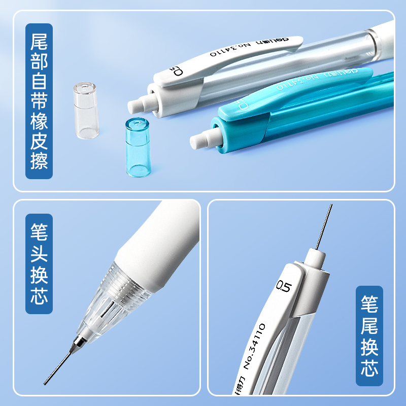 得力自动铅笔透明清新款HB小学生儿童按动式专用0.7笔芯活动铅笔