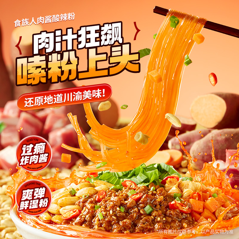 食族人经典肉酱酸辣麻辣爆肚粉糟粕醋海鲜粉袋装煮咖喱米线正品