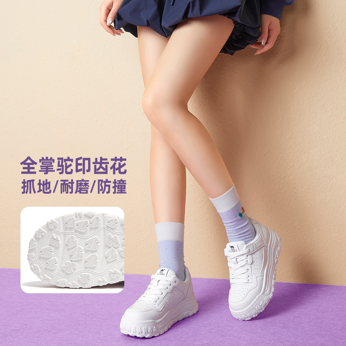 骆驼女鞋厚底板鞋2025秋季新款增高运动休闲鞋学生百搭透气小白鞋