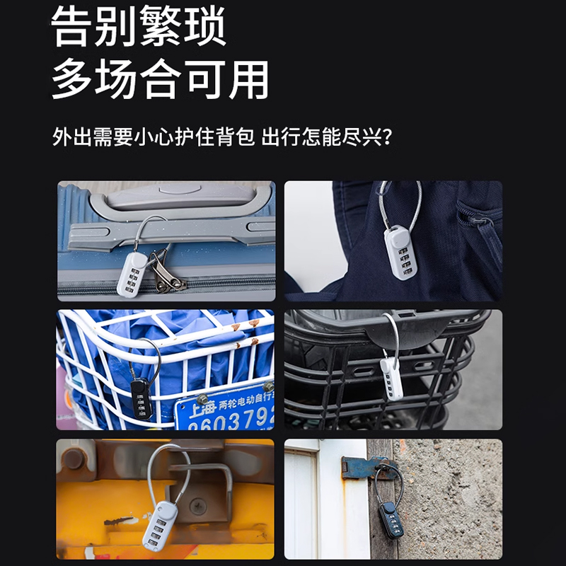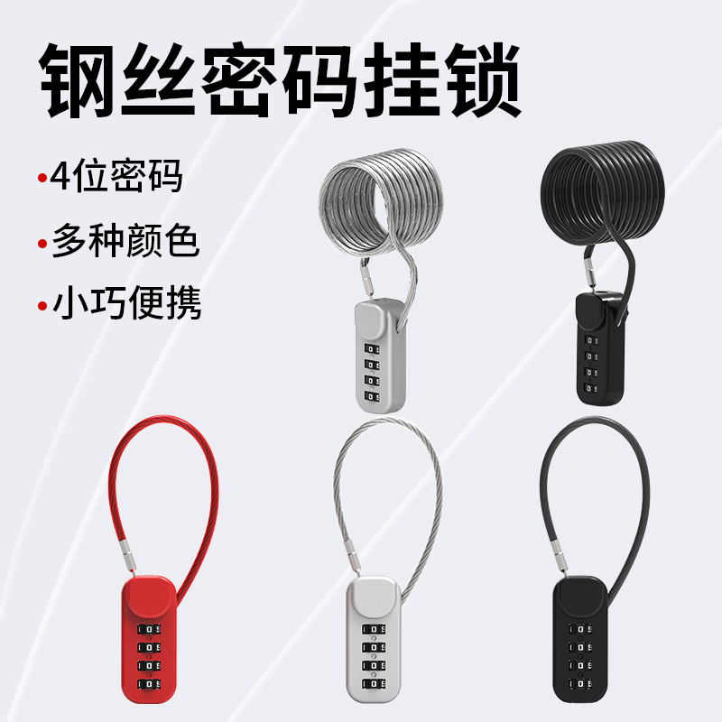 密码锁头盔自行车防盗钢丝挂锁电动车行李箱车筐柜子储物宿舍链条