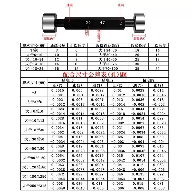 光滑塞规通止规光面锥度量规H7 双头孔径规2-26内径赛规 检具