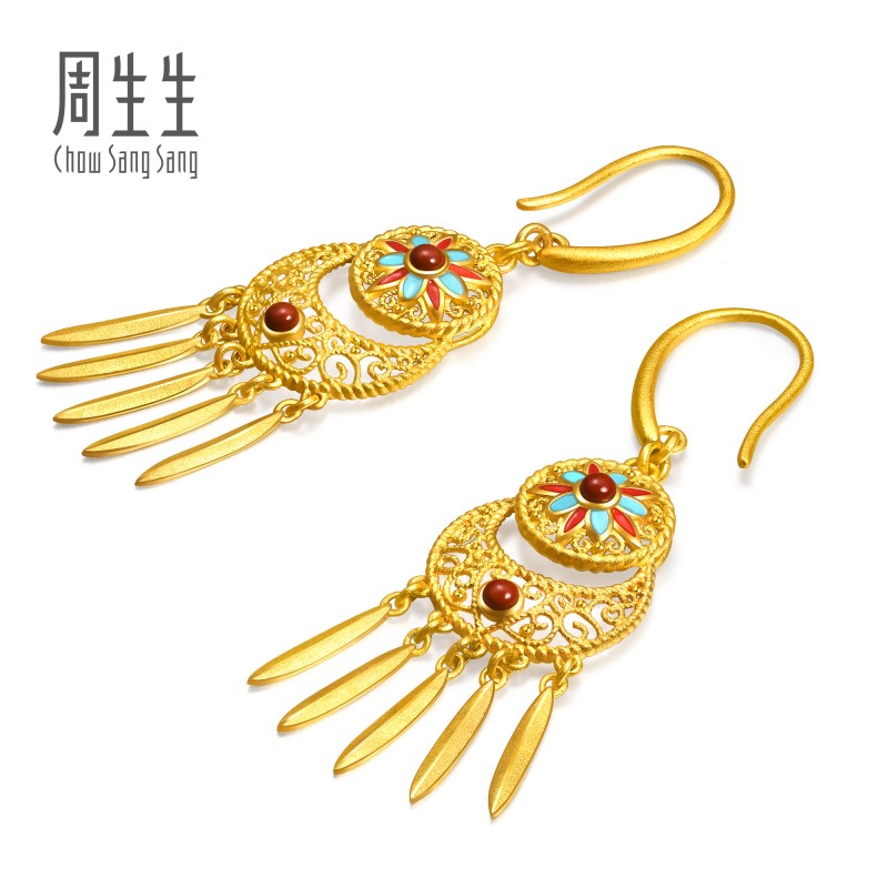 周生生黄金文化祝福玉髓日月羽毛民族风耳环95632E