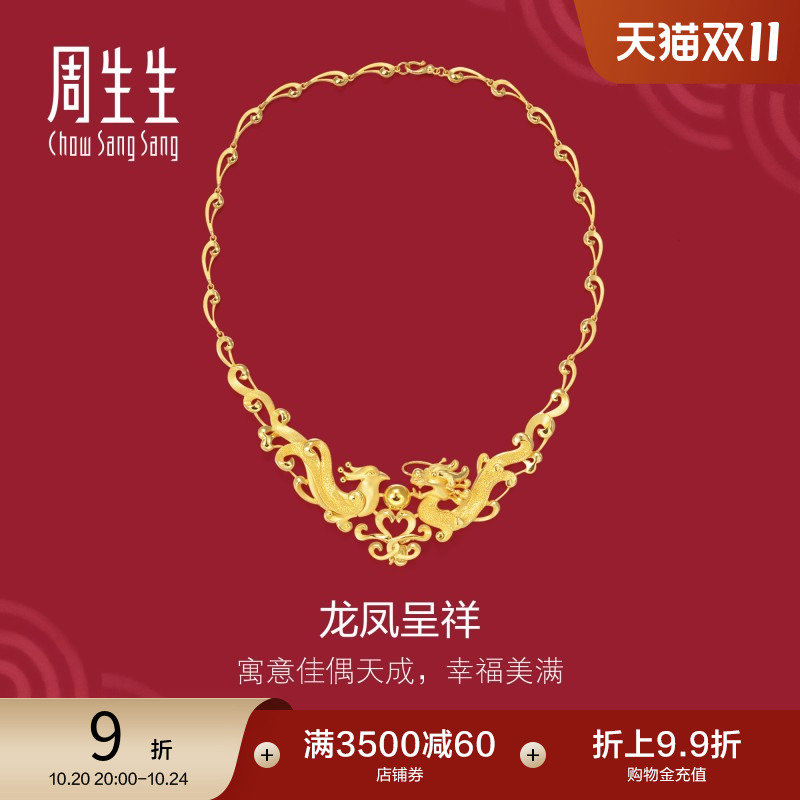 周生生黄金足金龙凤丝带心形婚嫁项链女款结婚 贺礼28139N