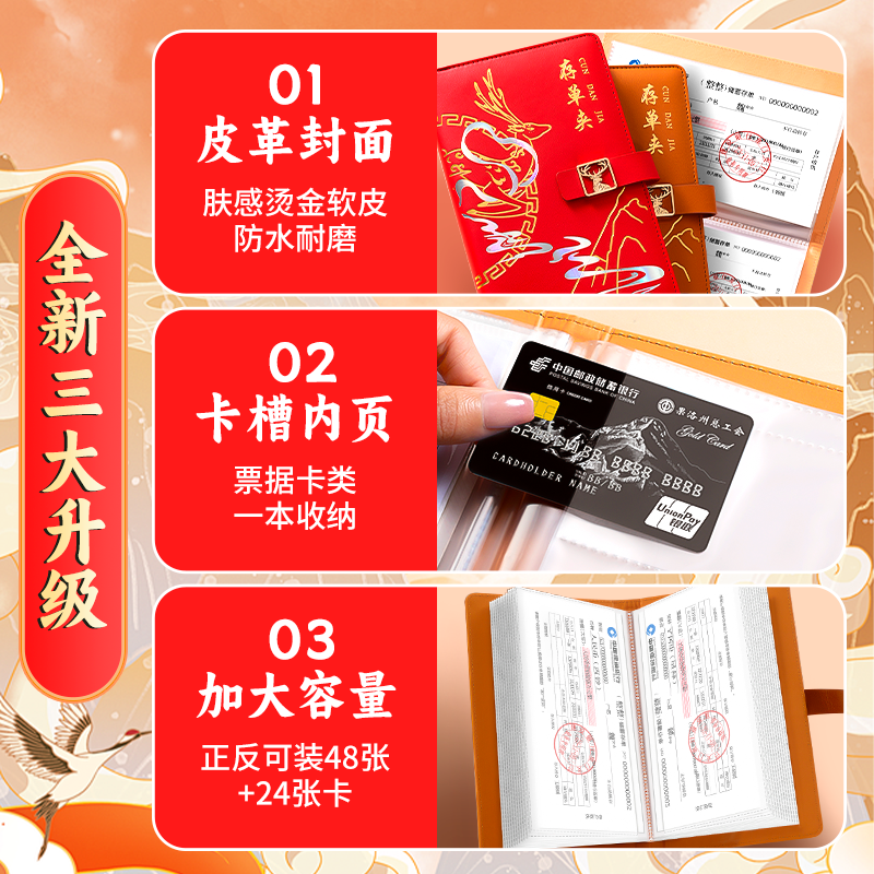 存单收纳本票据收纳册家庭现金理财存折定期银行存单夹子2025新款多功能存单夹票据夹存款单收纳专用夹带密码