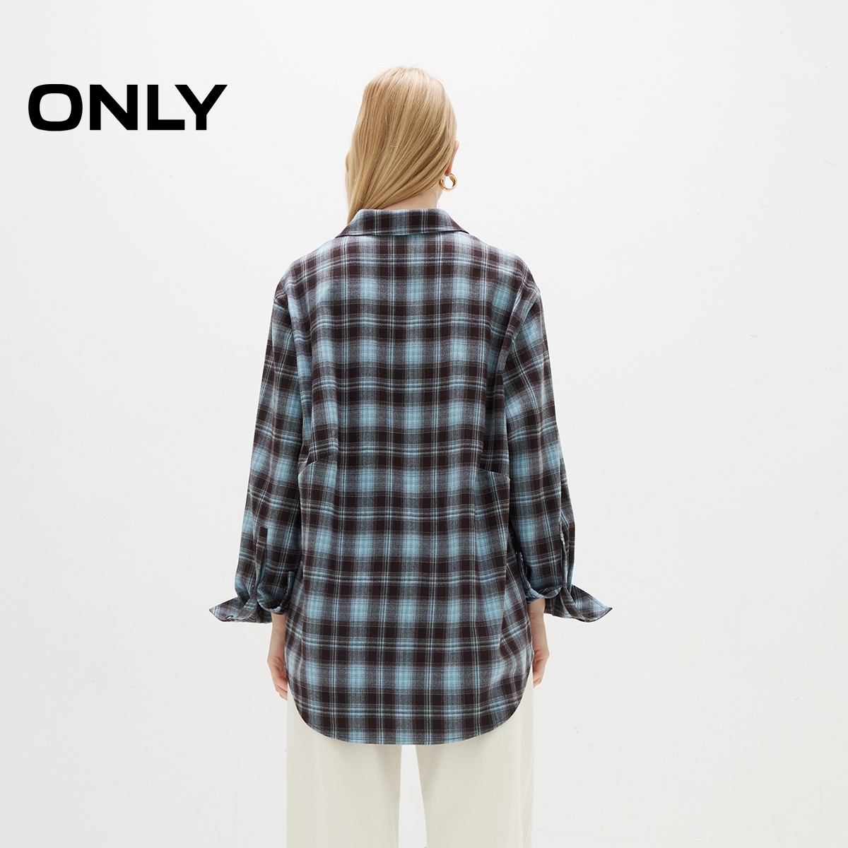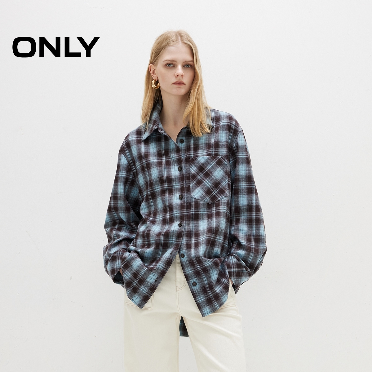 ONLY2025秋季新款宽松格纹美式复古风男友风学院风长袖衬衫女