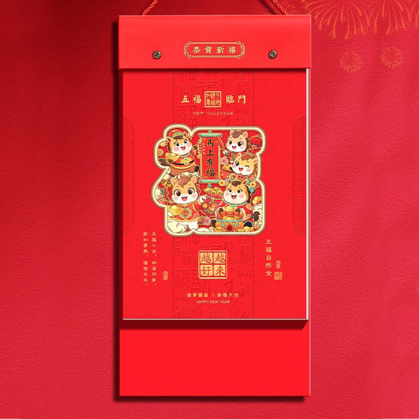 马年中国风挂历企业公司广告定制logo2026年新款两天一张双日历手撕挂墙家用国潮风老黄历印刷新春高档年历