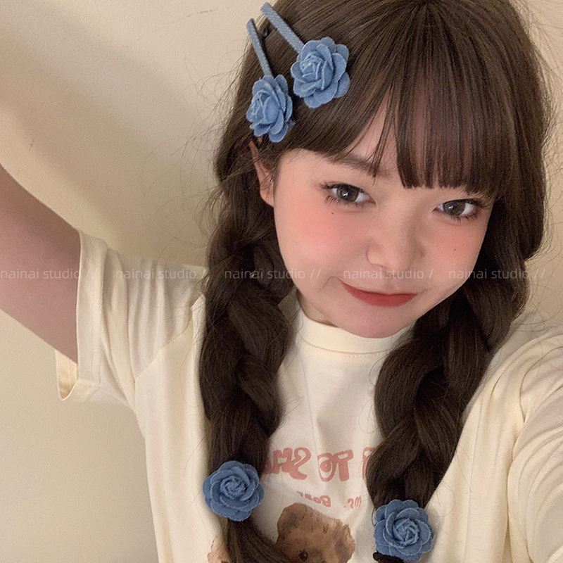 牛仔山茶花发夹~原创款!蓝色玫瑰花抓夹发夹发圈发箍发绳发饰女