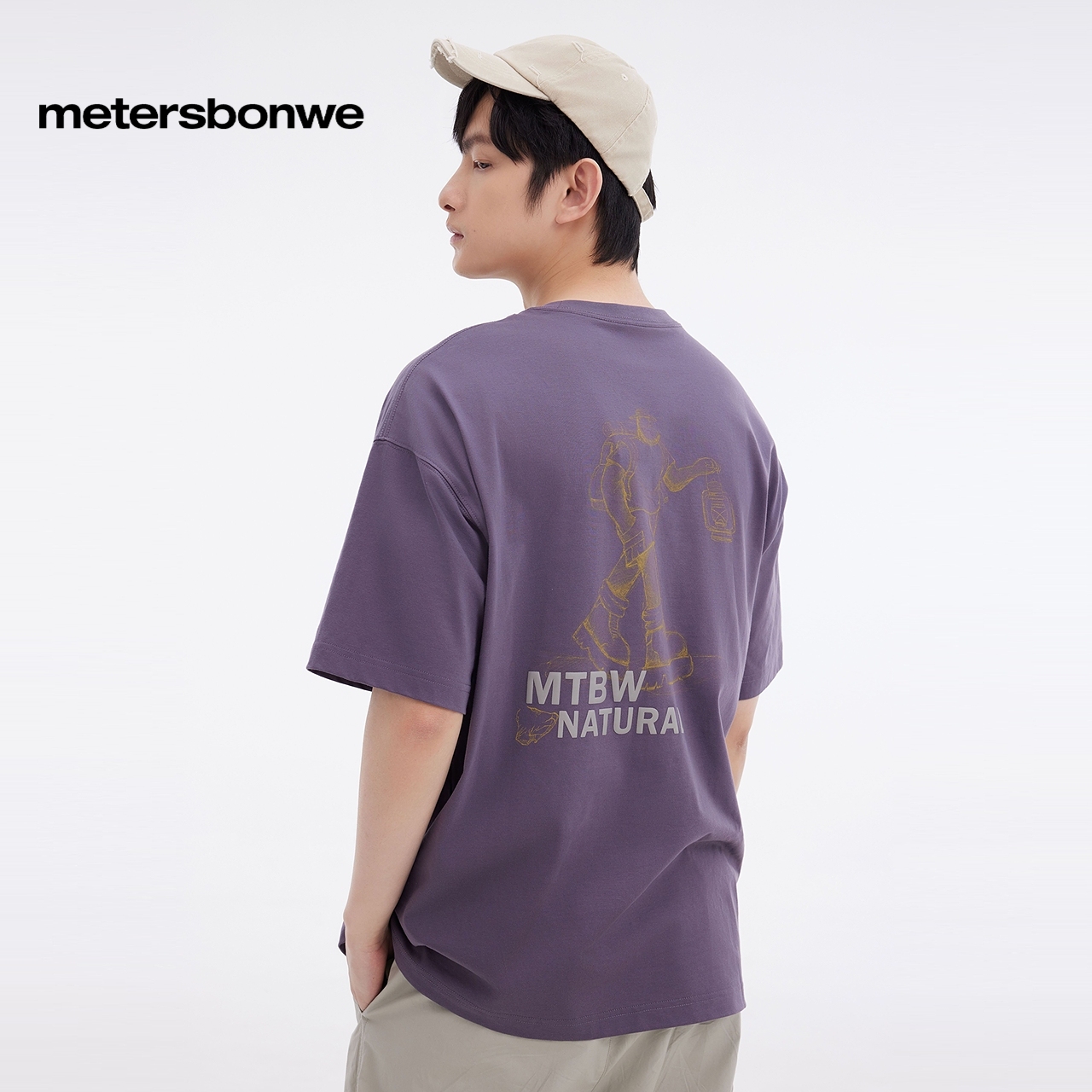 美特斯邦威男士2025年春季新款舒适百搭后背大图案山系IP印花T恤