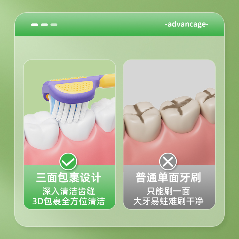 儿童牙刷三面宝宝3到6-12岁软毛换牙期小孩子学生专用3D牙刷清洁