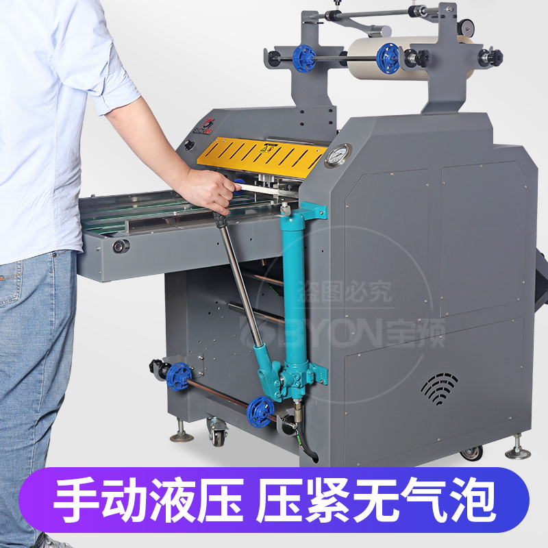 宝预BY-520H重型液压覆膜机大钢辊调速防卷曲自动腹膜机皮带进纸写真不干胶过膜机a3单双面覆膜冷热裱复膜机