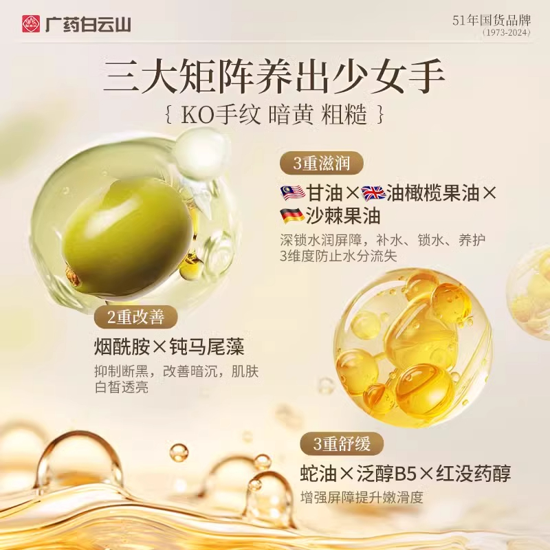 白云山蛇油护手精油淡纹滋润补水防干裂清爽不油腻护手霜官方正品