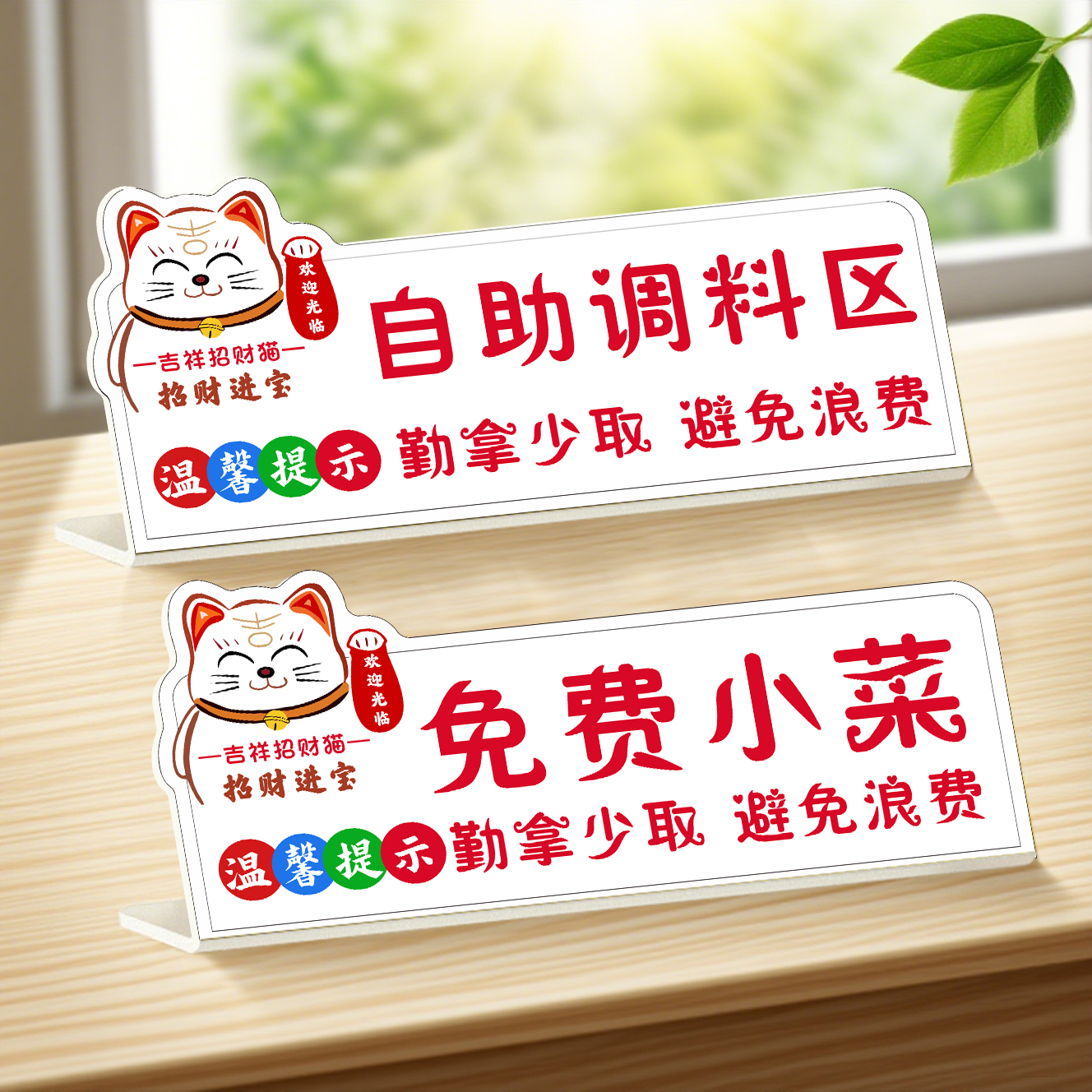 免费小菜提示牌自助调料区指示牌免费自助区调料区指示牌餐具请自取贴免费加饭适量自取请勿浪费温馨提示定制