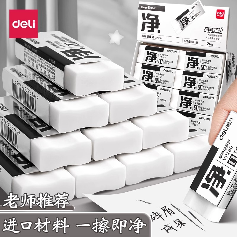 得力进口橡皮擦小学生无屑少专用像笔擦不留痕儿童擦得干净2b比像皮檫幼儿园考试美术生擦字成条象皮擦铅笔擦