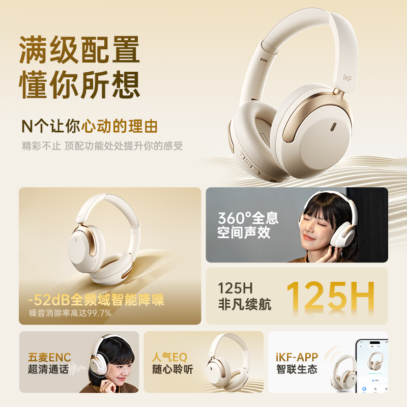 iKF T3 Pro主动降噪ANC自适应头戴式蓝牙耳机无线游戏耳麦长待机