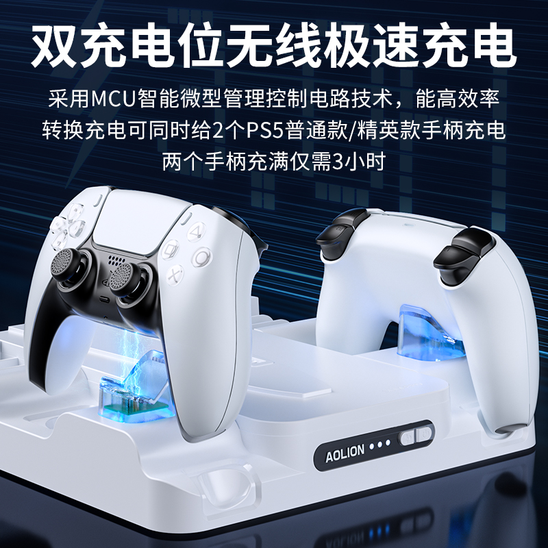 AOLION澳加狮 ps5散热底座Slim游戏主机pro通用充电底座风扇卡带收纳支架ps5手柄充电器适用光驱版/数码版