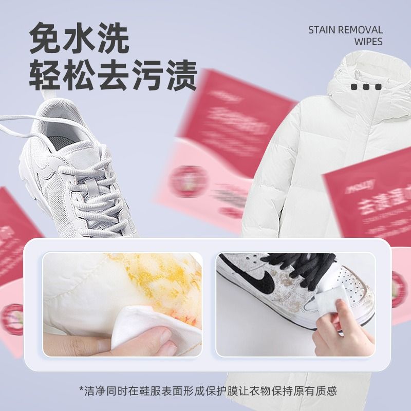 羽绒服应急衣物去渍湿巾不伤衣去污便携式免水洗20片小白鞋免洗