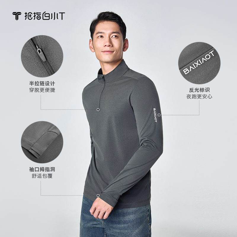 拇指白小T2025秋季速干长袖T恤防紫外线UPF50+夜跑骑行体恤